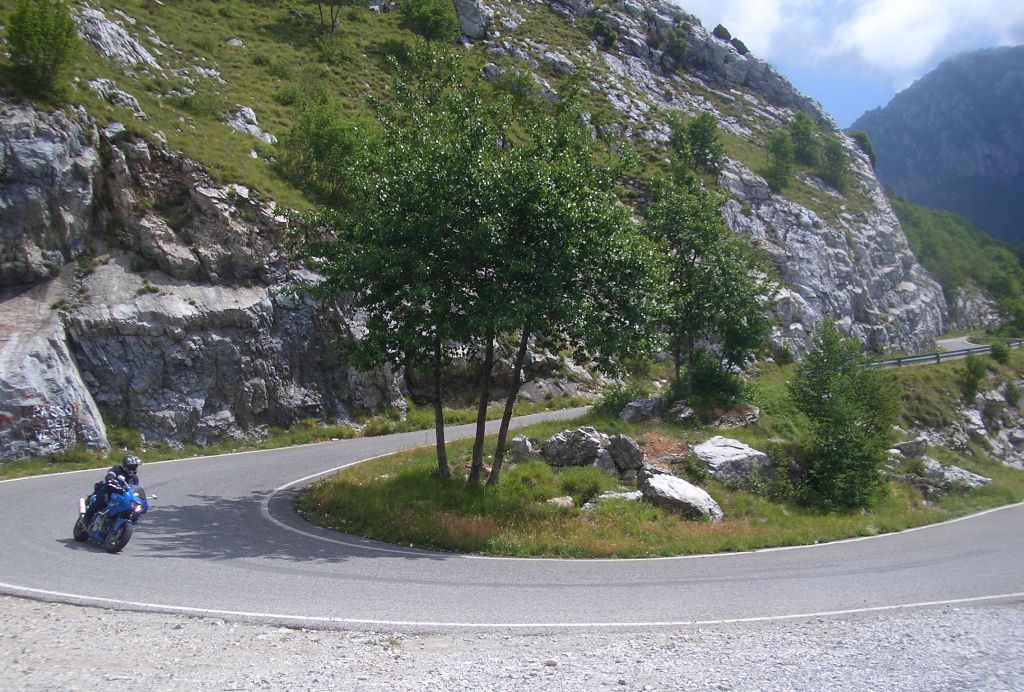 In Castelnuovo Di Garfagnana biegen wir zunächst auf die SP445 ab und folge ihr am Fluß Serchio bis nach Poggio, um dort unsere Reise auf der SP69 in Richtung Süden weiter fortzusetzen. Hier wird die Fahrbahn noch enger, die Kurven noch ein wenig spitzer und vor allem die zur Entspannung dienenden Geraden noch weniger. Die hoch in und an die Berge gebauten Ortschaften ziehen an uns vorbei und man fragt sich wie das alles zu der damaligen Zeit so möglich war. Doch viel Zeit für diese Gedanken bleibt nicht, denn die nächste Kurvenkombination wartet bereits auf uns. So vergeht ein sensationeller Vormittag bis wir gerade aus einem Tunnel heraus gefahren komme und sie vor uns liegen sehen.