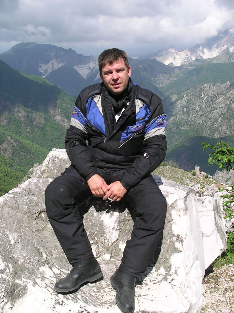 Die berühmten Steinbrüche von Massa-Carrara. Bereits seit dem Ende der römischen Republik wird hier der weiße Stein auf rund 1000 Meter Meereshöhe abgebaut. Doch erst die Renaissance, genauer Michelangelo machte ihn zu dem was er heute noch ist. Eine Art weißes Gold. An diesem klaren Tag reicht der Blick von hier oben aus weit über die Marmorfelsen hinaus, sodass am Horizont bereits das glitzernde Mittelmeer zu sehen ist. Nachdem die Maschinen an einem schönen Platz erst einmal verstummt sind, herrscht nun idyllische Ruhe. Nur der Wind pfeift sein Lied durch die wilde Szenerie. Außerhalb der Ferienzeit hat man dieses Gebiet beinahe für sich alleine, muss sich aber auch mit einigen Gegebenheiten anfreunden. Einige Restaurants machen eben nur abends ihre Pforten auf und Pizza gibt es sowieso auch nur dann, da die Wirte mittags die Steinöfen nicht anwerfen. Da es zugegebenermaßen schon Mittag ist, ist das gerade für uns auch ein wichtiges Thema und daher machen Marc und Klaus noch ein paar Bilder und wir brechen erneut auf mit dem Ziel Massa und dem Strand für ein Picknick. Noch einmal schlingt sich die SP13 ins Tal hinunter bevor wir an einem der öffentliche Strände ankommen. Weißer Sandstrand soweit das Auge reicht. In der Tat kommen wir uns tatsächlich vor wie an einem dieser im Reisekatalog beschriebenen Pauschalurlauberstränden, nur das der hier nicht so überfüllt ist. Das Picknick indes läuft, wer baden gehen will geht baden und der Rest genießt die Sonne auf der Haut.