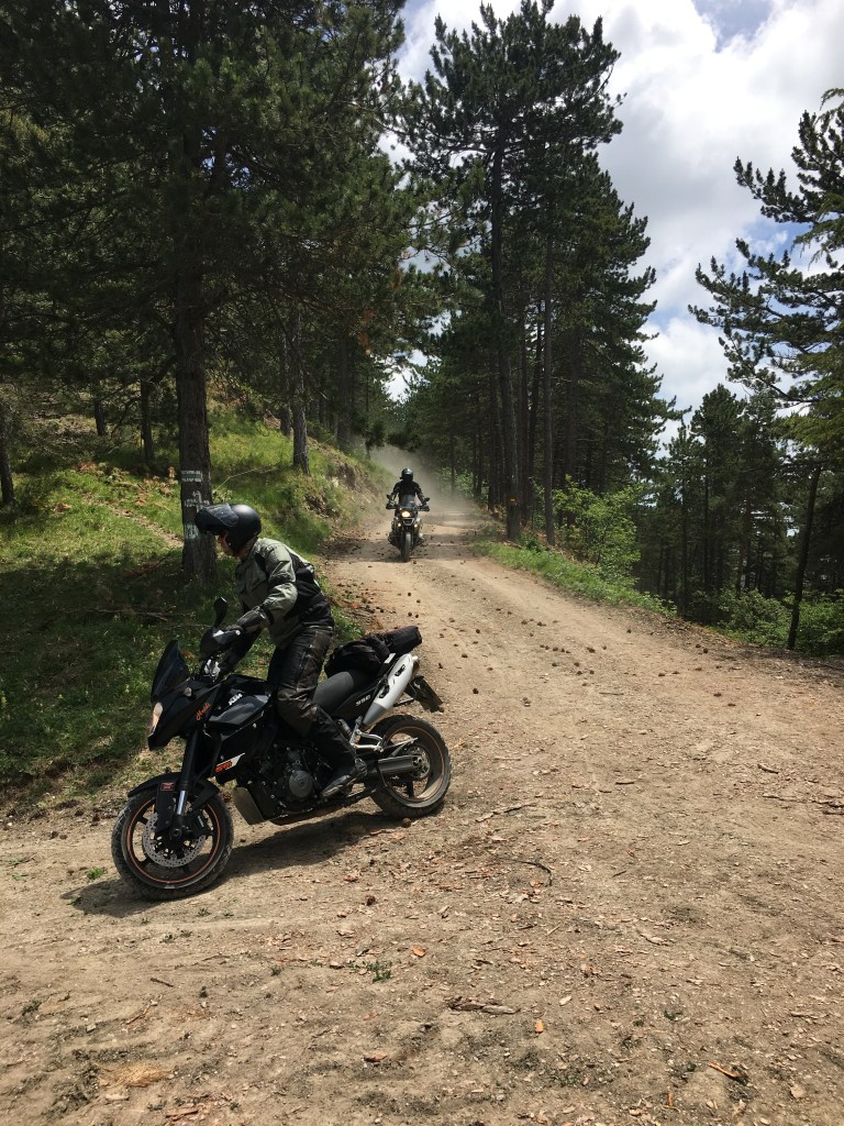 Anfang Juni machen sich Marc, Klaus, Sascha und ich auf den Weg nach Bajardo in ein B&B http://www.cameliedelbosco.com/index.php/en/, dass oberhalb des Ortes in den Bergen liegt. Mitten in der Natur beziehen wir unsere Zimmer bei Valeria und ihrem Mann und starten von dort aus unsere Tagestouren. Und schon die ersten Kurven zur Hauptstraße lockern gleich einmal alles in uns auf. In diesem Rhythmus geht es unten angekommen dann anschließend auf den Strecken der Touren weiter. Die Straßen sind zumeist eng, mit zum Teil heftigen Schlaglöchern und hin und wieder einer Hand voll Split in den Kurven gespickt. Es ist also Vorsicht und Konzentration geboten, denn schnell hat man sich verhoppast und kommt danach nur langsam wieder zurück in den Kurventritt. Relativ unbeeindruckt davon gibt sich allerdings meine Begleitung. Die Suzuki V-Strom 650 XT läuft ausgezeichnet und bietet zudem den nötigen enduristischen Anteil an Federwegen der hier gefragt ist. Auf diese Art und Weise lässt es sich durch die Wälder und über die Freiflächen cruisen bis hin zu unserem heutigen Ziel der Grenzkammstraße, wo das eigentliche Abenteuer beginnt.