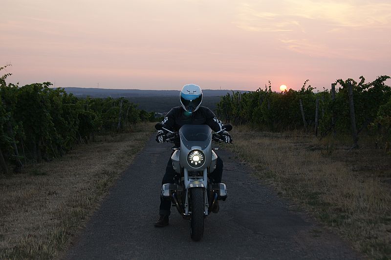 If you take a sunny morning with almost 20 degrees Celsius as an example, and the B47 (Hutzwiese), famous in the Odenwald, is clear in front of you, the range of rideable lean angles with the BMW moves steadily from one footrest nipple to the next. If you even challenge it a little (which I really do very rarely and only on open roads) it can happen that the cylinder protection of the R carefully touches the ground. Mind you, all this with an absolutely safe driving experience and the given speeds. And even when the tarmac gets spottier and bumps and grit on the 3D roads of the area cause unrest in the chassis, the Metzeler cuts a fine figure on the rim. For me, it all feels super solid and safe.