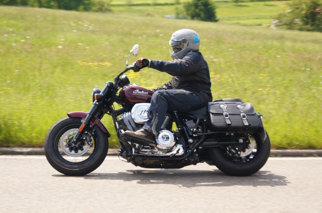 Und genau das ist es im Grunde genommen auch, was dem Häuptling unter mir seine beiden Seelen verleiht. Denn er kann, wenn er will, ist zum einen mit seinen Satteltaschen und einer Rolle auf dem Heck der perfekte Tourenbegleiter. Auf der anderen Seite ist da dieser nennen wir es einmal, krasse Sport Modus und das straffe Fahrwerk, welche die Indian mit etwas Fantasie zum Wild-Horse-Bobber machen, mit dem man am liebsten am nächsten Drag-Race teilnehmen möchte. Diese Kombination aus Engel und Teufel ergibt eine Komposition, die ich zu Beginn des Testes noch nicht begriffen hatte, da mir Vieles erst einmal, verglichen mit anderen Maschinen dieser Gattung merkwürdig vorkam. Die Chief funktioniert aber anders und ich finde das sehr gut so.