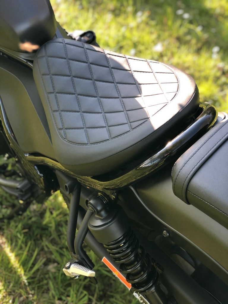 Die gut ausleuchtenden LED-Lichtelemente und das überarbeitete digitale Display mit Ganganzeige geben ihr einen modernen Touch mit auf den Weg, wobei das Display aufgrund der Reflektion in der direkten Sonne hin und wieder etwas schwer ablesbar ist. Der gesamte Bobber Look wird von den dicken Schlappen vollendet. Mit 150/80-16 hinten und 130/90-16 vorne wirkt es fast so, als hätte man zu viel Botox in die Reifen gespritzt und sie dann auf die Felgen montiert. Die Menge an Gummi hat aber auch durchaus ihre Vorteile, denn die Eigendämpfung erhöht den Komfort, der Grip ist besser und natürlich trägt es im Konzept auch zur Optik bei.