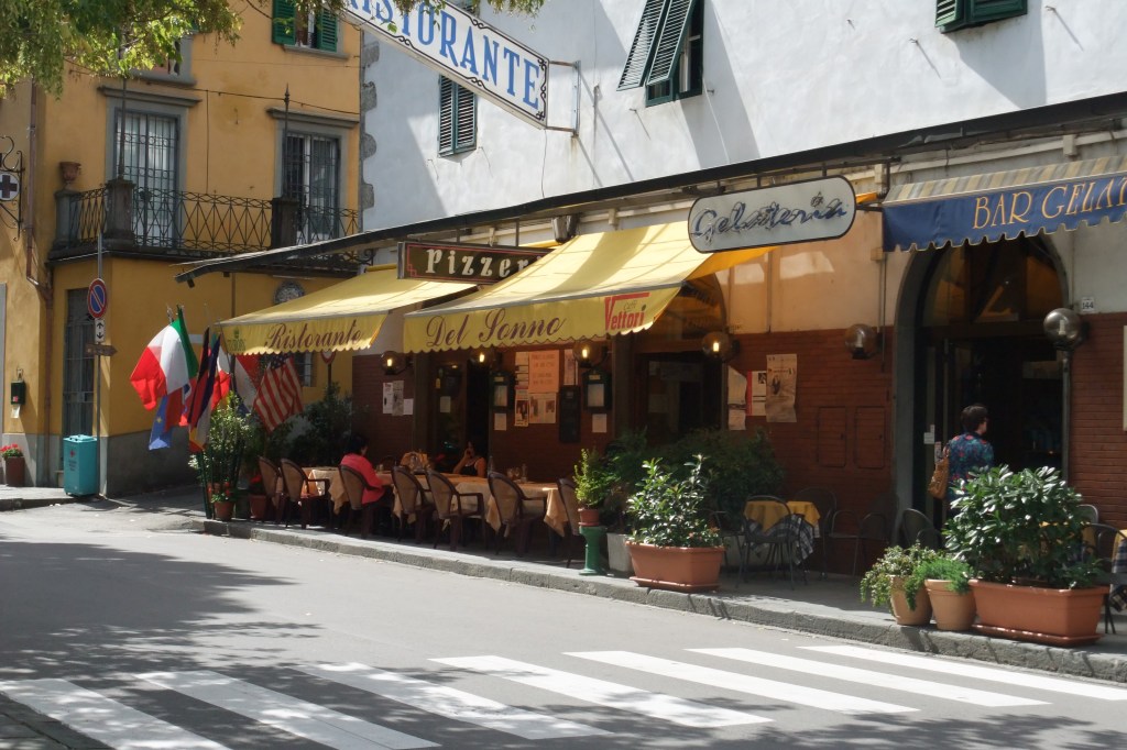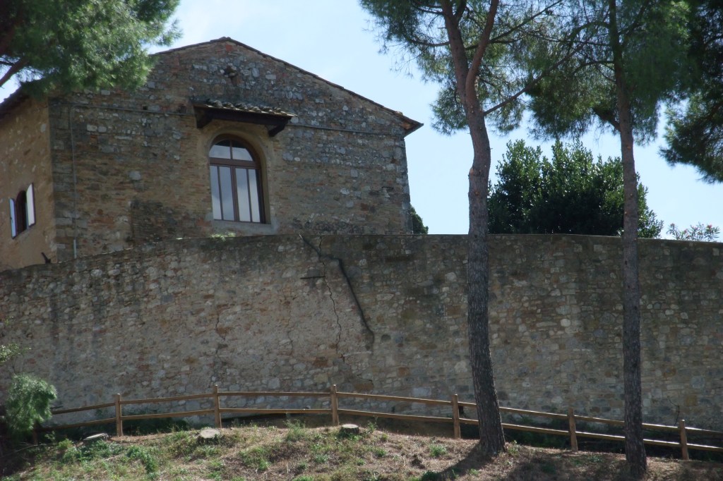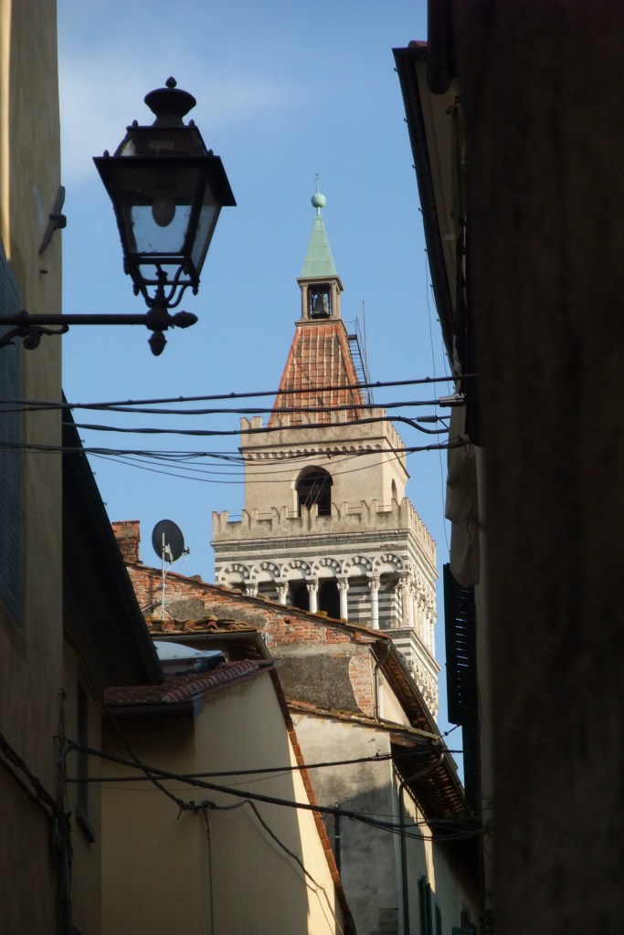 Es dauert gut 10 Stunden, bis wir die Stadt deren Gründung auf die Etrusker zurück geführt wird am frühen Abend erreichen. Ist die Strecke bis Verona noch einigermaßen erträglich, so zieht sie sich durch die Poebene wie der sprichwörtliche Kaugummi in die Länge und wir sind wirklich froh als bei Bologna wieder mehr Landschaft vor der Windschutzscheibe auftaucht. Nur wenig später geht es noch ein Stück durch Pistoia hindurch, den Berg hinauf und wir sind am Ziel. Unsere Unterkunft, das Agriturismo la Corte liegt am Pilgerweg und zugleich inmitten der Oliven Heine etwas oberhalb der Stadt. Eine herzliche Begrüßung kommt uns in Form der Besitzer direkt entgegen, woraufhin sich Carmen und ich kaum angekommen schon heimisch fühlen. Da es allerdings schon etwas später ist, fehlt uns an diesem Abend einfach die Zeit, um noch einkaufen zu gehen. Daher beschließt Isabella, die Hausherrin uns einen Tisch im Sportlerheim zu reservieren. Sportlerheim, ja ihr habt richtig gelesen und könnt auch genau die Bilder, die ihr gerade im Kopf habt für die Definition benutzen. Allerdings mit einer Ausnahme, denn an diesem Abend gibt es dort frisch gemachte Pizzen aus dem Holzofen und die sind ohne Übertreibung sensationell. Es dauert jedoch etwas, bis wir an der Reihe sind. Ja irgendwie hat es für uns ein wenig den Anschein, dass alle Bedienungen Angst vor uns und den kanadischen Damen aus unserer Unterkunft haben. Und in der Tat, die Situation klärte sich erst als eine junge Dame an unseren Tisch kommt und in perfektem Englisch unsere Bestellung aufnimmt. Wir könne uns das Lachen jedenfalls nicht verkneifen, als sie uns sagte das man sie extra zu Hause angerufen habe, um uns zu bedienen. Vollgegessen und mit reichlich Rotwein abgeschmeckt landen wir also nach einem tollen Abend in unserem Bett, um am folgenden Tag mit den Erkundungstouren zu beginnen.