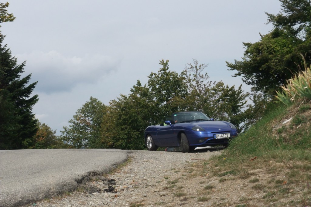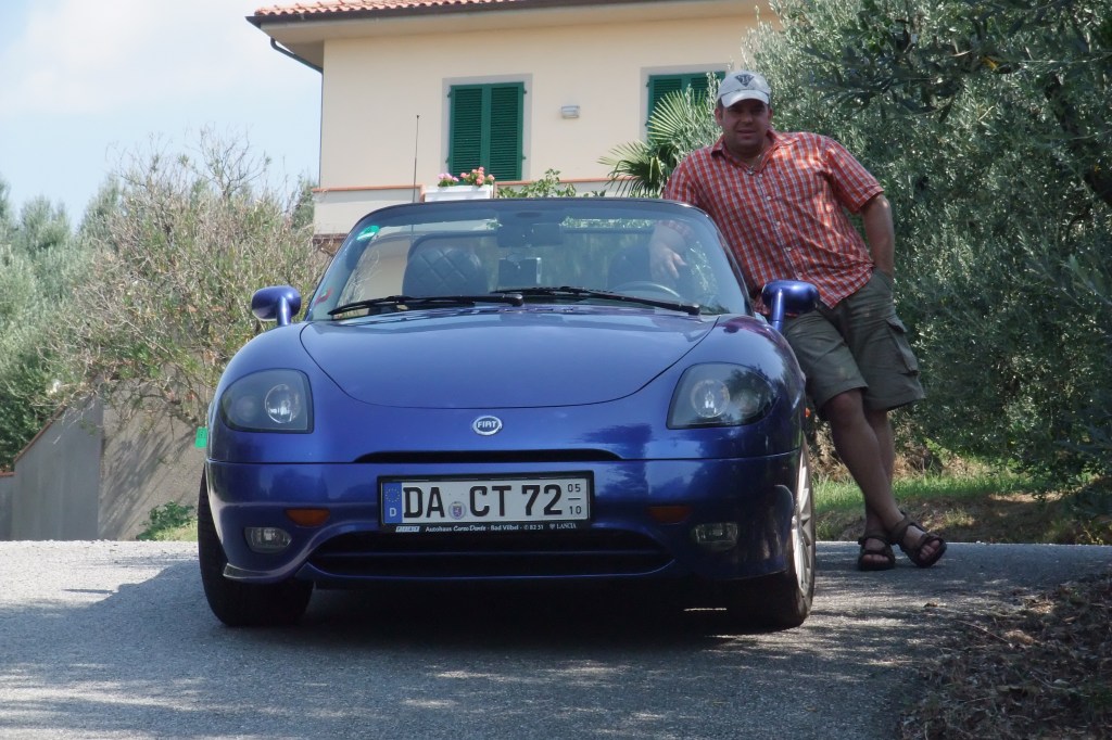 Es ist Spätsommer und nach einem Jahr voller Arbeit wissen wir tatsächlich bis kurz vor unserem Urlaub noch nicht genau was wir eigentlich machen wollen. Und so lustig das auch klingen mag, als die Entscheidung endlich fällt, stehen wir gleich vor unserem nächsten Problem. Denn hey in die Toskana mit einem Opel Signum oder einem Citroën C4 das geht ja nun wirklich nicht. Ein passender fahrbarer Untersatz muss also schnellstens her. Damit der zu Italien passt, soll es ein Alfa oder Fiat sein und möglichst na klar ein Cabrio. Ja ich weiß kein Italiener würde der Hitze wegen in dieser Jahreszeit mit einem Cabrio offen durch die Gegend fahren, aber wir finden es in diesem Moment einfach eine romantische Idee. Und so gehen wir auf die Suche danach. Nach einer gefühlten Ewigkeit (gut 2 Wochen) und viel Schrott auf den bekannten Plattformen im Internet, finden wir praktisch kurz vor Torschluss tatsächlich noch ein blauen Fiat Barchetta der bei uns einzieht. Nun steht also der Reise nichts mehr im Wege und nur Tage später geht es los.