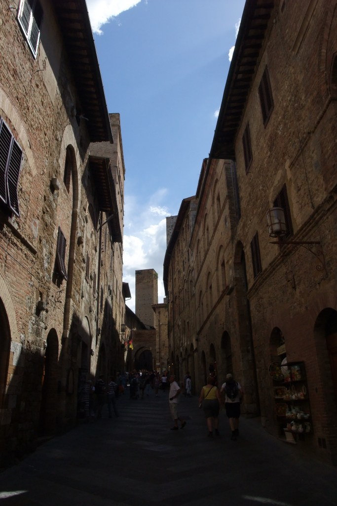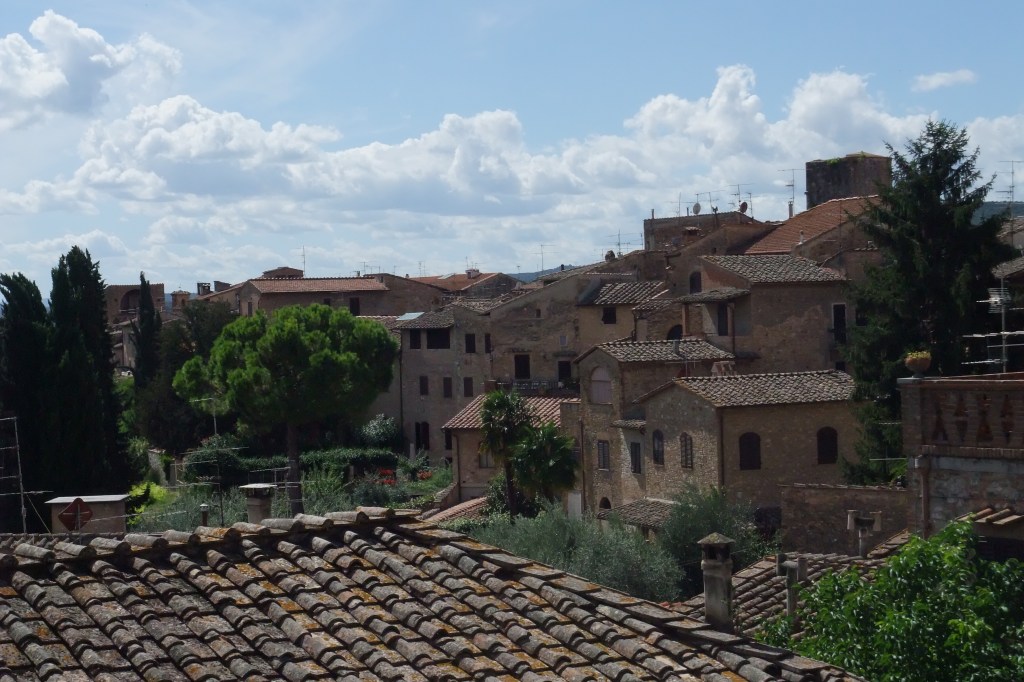 Das erste was wir vom Ort der vielen Türme am Horizont sehen sind, na klar die Türme. Nicht umsonst trägt dieser Ort mit seiner historischen Altstadt auch den Namen ‚, Mittelalterliches Manhattan“. Dadurch ist er natürlich auch eins der beliebtesten Ausflugsziele der Gegend, was uns an diesem Mittag allerdings gar nicht so vorkommt. Ja es sind Besucher da, aber alles ist entspannt und wir haben viel Platz, um den Kern zu erkunden. Den Anstieg auf einen der 13 Geschlechtertürme jedoch sparen wir uns, denn es ist auch so schon warm genug. Lieber saugen wir die Atmosphäre von hier unten in uns auf und genießen unsere Mitbringsel aus dem Rucksack auf einer schattigen Treppe am Piazza della cisterna. Irgendwann die Sonne hat lange schon ihren Höhepunkt überschritten geht unsere Fahrt weiter und wir gelangen über Greve in Chianti vorbei an Fireze und den Lago di Bilancino wieder zurück zu unserer Unterkunft. Der Abend endet im Garten von La Corte mit Essen, Kerzenlicht und dem Geschrei brunftiger Hirsche.