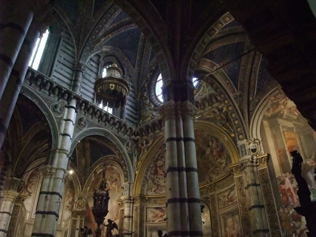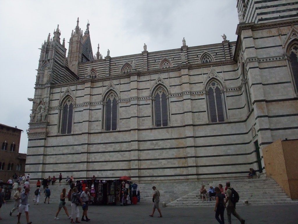 Ein paar Kilometer sind wir schon unterwegs als Zucchero im Radio sein Il Volo von sich gibt und wir Montaione passieren. Die Luft ist noch kühl und doch merkt man schon jetzt das es erneut einen heißen Tag geben wird. Zypressen und Weinberge ziehen an uns vorbei und die Landschaft vor uns tut sich weit auf. Man hier könnte man es wirklich aushalten und später einmal ein zufriedenes Leben genießen. Noch ein weiteres Mal sehen wir auf unserer Fahrt de Türme von San Gimignano in der Ferne bevor wir langsam ins Stadtgebiet von Siena hineinkommen. Anders als erwartet verläuft die aber unheimlich ruhig und entspannt dort und auch hier haben wir schnell einen Parkplatz mit unserem kleinen blauen Freund gefunden. Wir folgen den Wegschildern und der Karte in unserer Hand, um die Stadt zu erkunden, deren Geschichte ebenso weit in die Vergangenheit zurück reicht wie die von Pistoia.