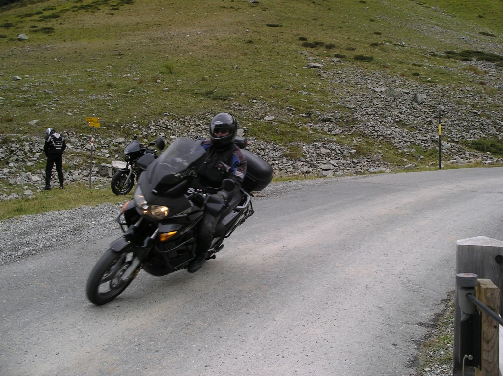 Der höchste Straßenpass der Schweiz liegt auf 2501 Meter Seehöhe und ist ein echtes Highlight. Das erstes Erlebnis mit seinen Kurven und engen Spitzkehren hatte ich bereits 2004 als ein nicht unbeträchtlicher Teil der Fahrbahn noch nicht geteert war. Damals kamen wir über Bormio die Stilfser Joch Rampe hochgefahren und wollten eigentlich über das Stilfser Joch hinunter in den Vinschgau. Aber ein gewaltiges Schneebrett versperrte uns damals die Abfahrt ins Tal, sodass wir über den Umbrailpass ausweichen mussten. Nicht wissend das wir uns auf dem höchsten Punkt der Schweizer Straßenpässe befanden überfuhren wir die Grenze zur Schweiz etwas respektlos und ohne größer Beachtung. Doch was danach folgte hatte sehr schnell unsere ungeteilte Aufmerksamkeit. Schotter, nein nicht so losgelöst wie auf einer enduristischen Strecke, mehr die festgefahrene Variante und doch eine Herausforderung für uns und die schwer beladenen Maschinen. Zu Beginn noch sehr zögerlich ließ ich mich darauf ein, bekam jedoch von Kurve zu Kurve mehr Vertrauen, bis es irgendwann wirklich rund lief. So erging es auch meinen Kumpanen, die wie ich gerade ein Abendteuer erlebten, welches uns noch lange nach der Tour beschäftigte.