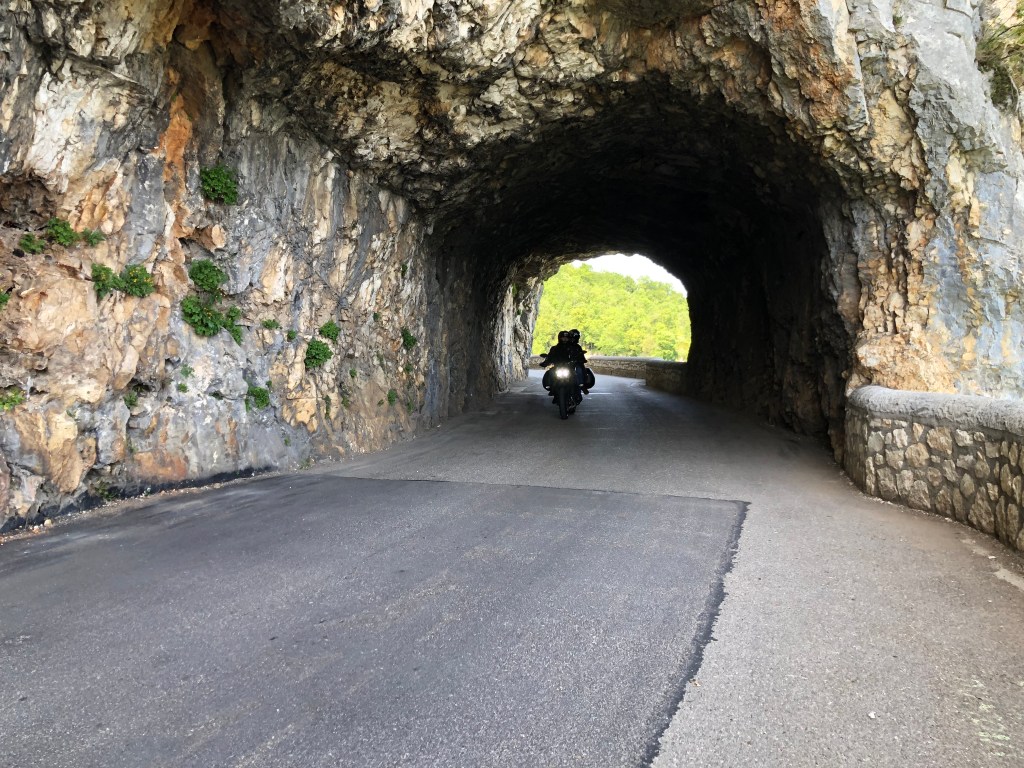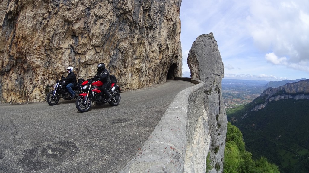 It is the morning of 20 May 2016, I wake up in a small hotel in Tain L’Hermitage and start from there with Michael and Philip for my first press trip. What I don’t realise at this point, due to ignorance, is what awaits me on this day, which, if I may say so, far surpasses anything I have ever ridden before. We drive up the mountain via the Col du Tourniol this morning with some very scenic bends via Bouvante and the D131. A good two and a half hours after our start, I stand with my arms open like an eagle spreading its wings in a tunnel carved out of rock at Cirque De Combe Laval and am happy beyond measure. It’s an experience I’ll never forget for the rest of my life, so it was time to do it again. This time, however, from the other side, because we start south in Valreas and do a day tour.