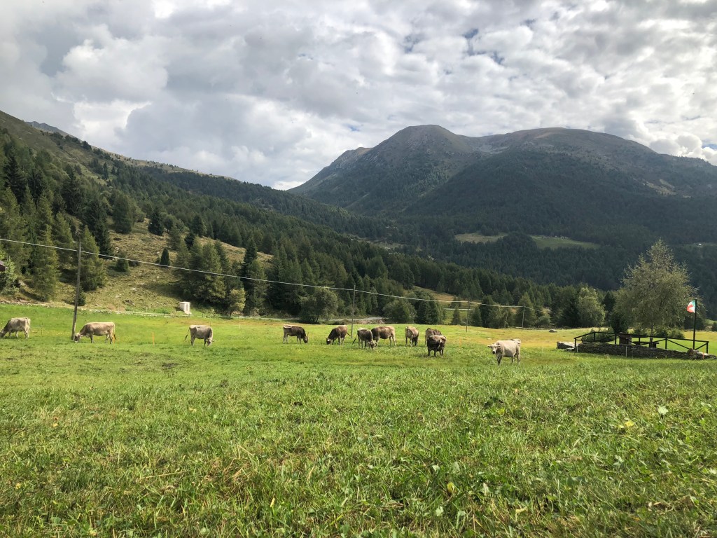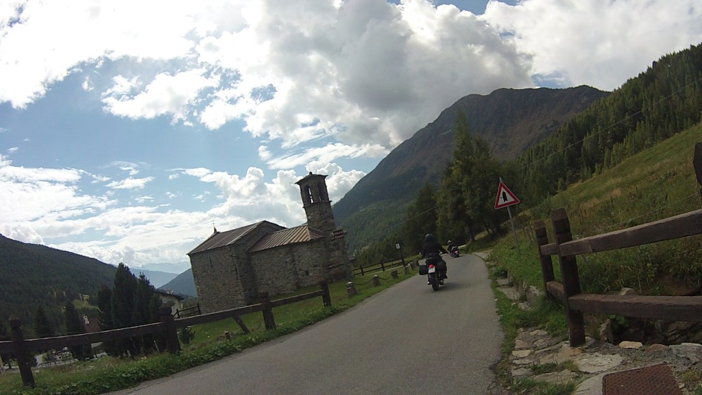 Der Foppapass, ital. Passo della Foppa, heute besser bekannt unter dem Namen Passo del Mortirolo geht etwas weiter südlich über die Berge und erwartet uns bereits. Gut, bisher weiß er das noch nicht, aber es ist die von uns gewählte Strecke an den See und wir sind unbekannterweise sehr neugierig darauf, was dieser Weg zu bieten hat. Er verbindet die Ortschaften Mazzo di Valtellina im Westen, von der aus wir ihn befahren, mit Monno im Südosten. Dabei biegen wir bereits vor Mazzo di Valtellina in die Passstraße ein. Etwas weiter südlich im Ort gibt es eine weitere Einfahrt den Berg hinauf, wie wir später bei der Recherche zu diesem Text erfahren. Die einspurige Straße windet sich mit sportlichen 10 % den Berg hinauf bis hin zur Scheitelhöhe auf 1852 m. Die Landschaft dorthin ist bezaubernd und immer wieder wandern die Blicke nach rechts und links bis zur besagten Gaststätte am Beginn des Textes. Ihr Name ist im übrigen Bar, Albergo, Passo Mortirolo und gut essen, sowie schlafen kann man dort auch. Von hier aus geht es den Berg hinunter bis nach Monno, das wir nach unserer Pause insgesamt rund 30 Tornati und den rund 28 Kilometern Strecke erreichen. Dabei war diese Streckenwahl jeder einzelne Kilometer wert. Denn nur selten hat es hier viel Verkehr, die Natur überwiegt, wodurch der Mortirolo für uns seither eine echte Alternative zum nördlich verlaufenden Gavia Pass ist.