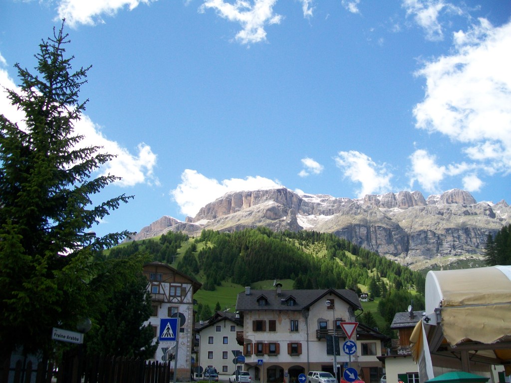 Die Auffahrt zum Pordoi beginnt also praktisch fließend, mit dem Ende der Abfahrt des Sella Jochs. Und hey das Lächeln unterm Helm hat sich mittlerweile zu einem fetten Grinsen entwickelt. Hartmut und ich folgen dem Streckenverlauf hinauf zur Bergspitze. Aber warte mal, da war doch noch etwas! Arabba dort unten im Tal liegt es friedlich und mit einem Mal sind die alten Erinnerungen wieder zurück. Auf der Passhöhe des Pordoi halten wir einen Moment inne schauen hinunter und auf das, was nun noch folgt. In diesem Fall sind es einige sportliche Kurven und gut und gerne an die 30 Spitzkehren bevor wir in Arabba ankommen. Natürlich ist auch Kehre Sechs dabei, aber dieses Mal läuft hier alles rund und die R und ich ziehen freundlich grinsend hindurch. Im Ort angekommen beschließen Hartmut und ich dann erst einmal eine Pause zu machen und besprechen bei einer Portion Spagetti Aglio e Olio e Peperoncino den weiteren Tourenverlauf. Den Gedanken die Tour noch zu erweitern, lassen wir allerdings für heute fallen und konzentrieren uns nach dem Mittagessen und dem obligatorischen Cappuccino auf die restliche Strecke.