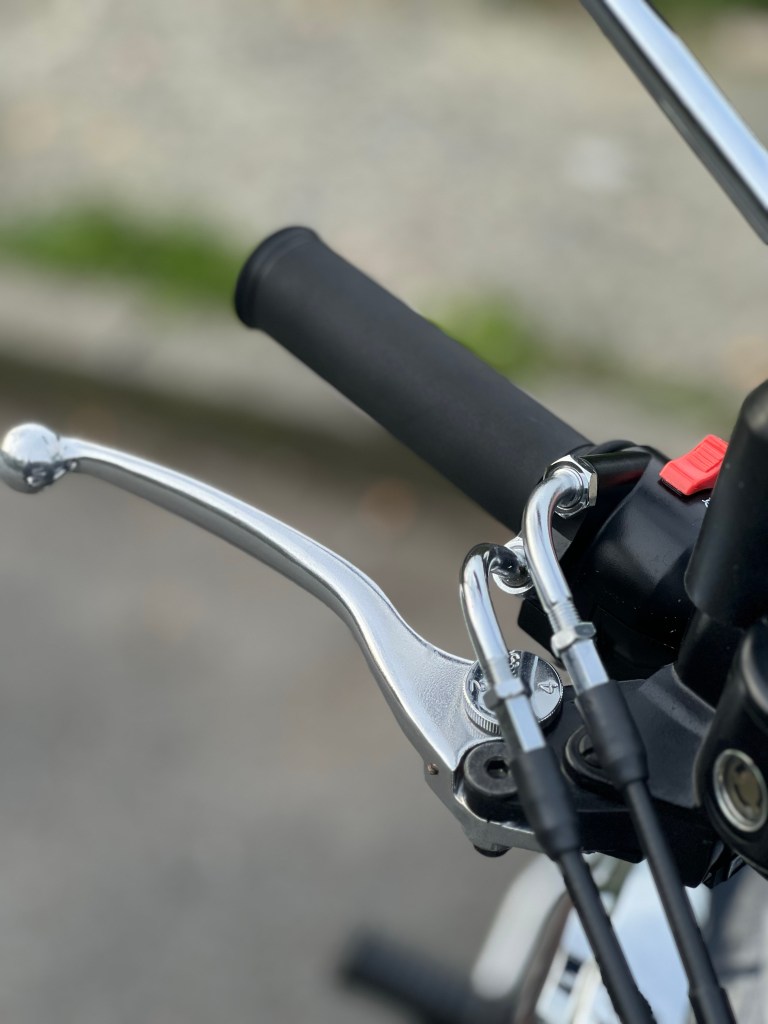 However, this riding experience first had to be adapted a little on our two W’s. Wider handlebars and adapted seat benches made the machines a bit more manageable and comfortable. Progressive fork springs, thicker fork oil and better suspension struts improved the overall handling characteristics considerably compared to the original chassis. Last but not least, modified brakes (a Beringer brake system on Carmen’s bike, a Wave disc with sintered pads on mine) equipped with steel braided lines ensured a finer dosage and better stability. The drum brake as a deceleration aid on the rear wheel should only be mentioned briefly here. It’s nice that it’s there.