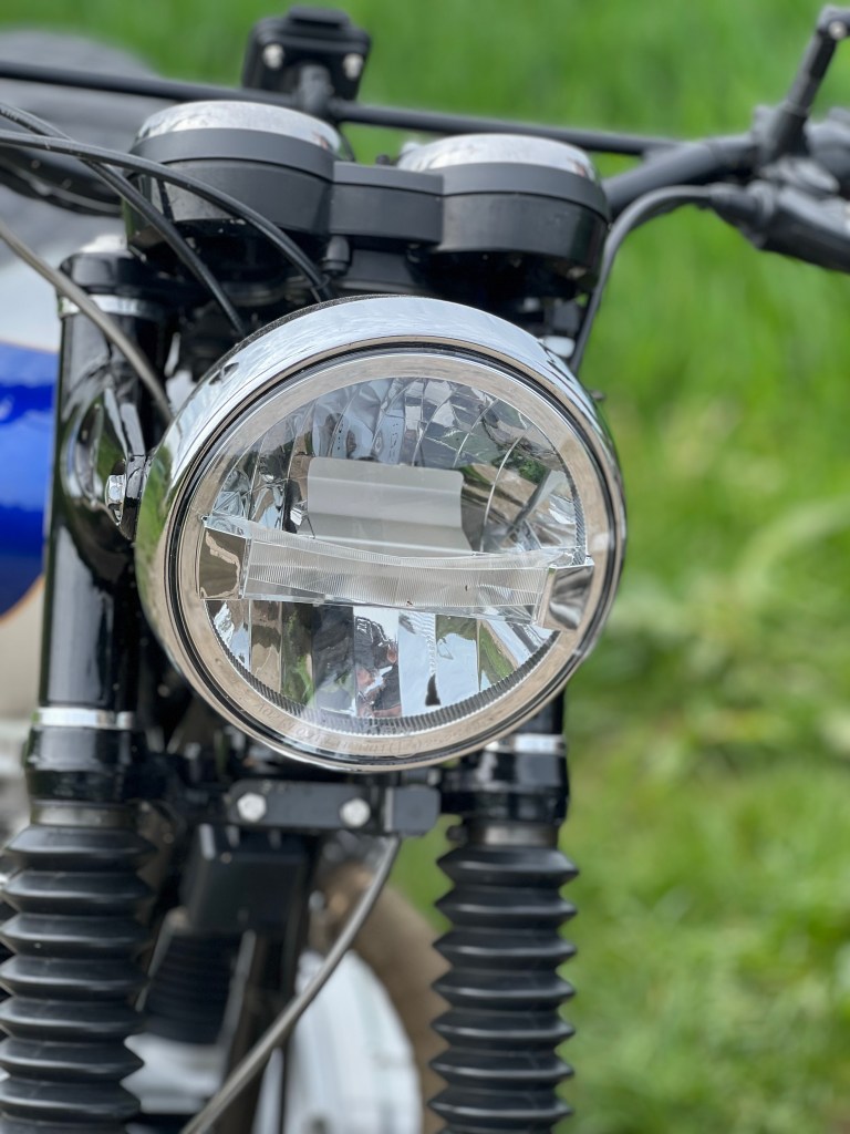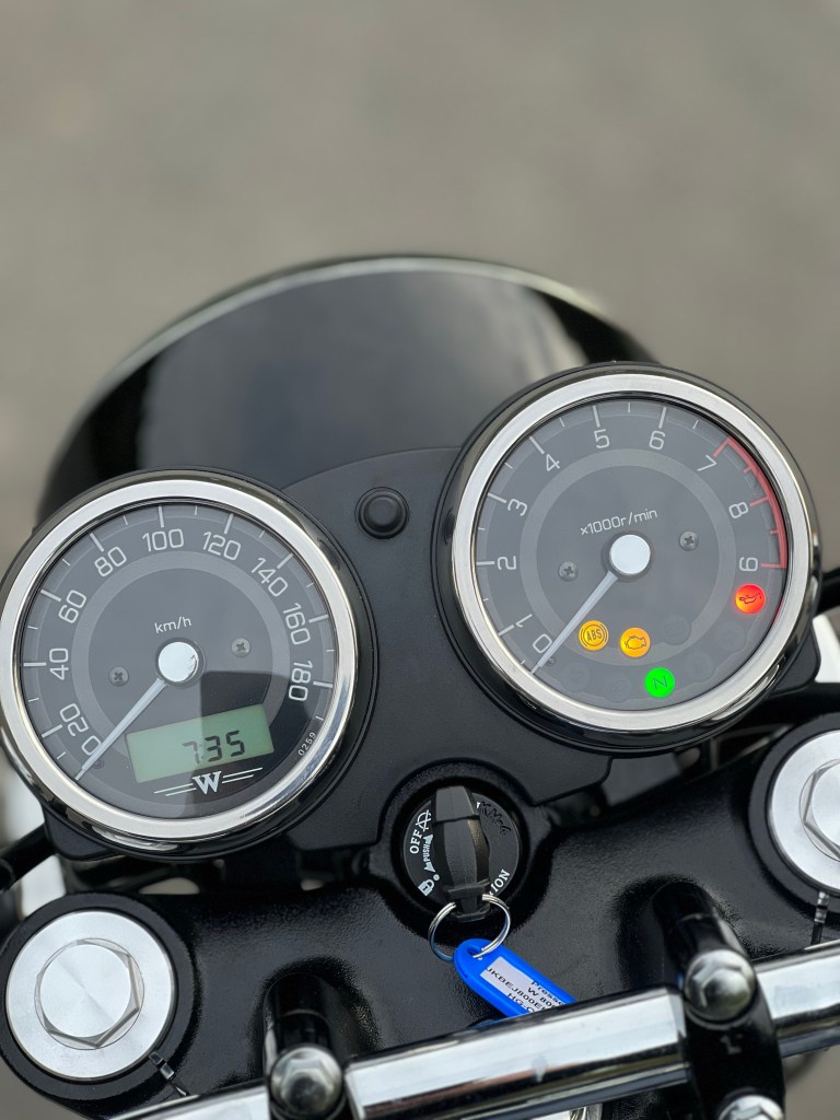 In the further course of our test drive, no more nasty surprises come to light, rather very good ones, because the 15-litre tank is sufficient for a decent range with a fuel consumption of between 3.8 and 4.0 litres. And even if its shape is not quite as beautiful as the old one, it suits the W. In addition to the indicators and tail light equipped with classic bulbs, the front goes hipster and stretches its chic LED headlight into the sunlight. Not only does it look good, it can also do something, which we experienced live in the dark on the way home.