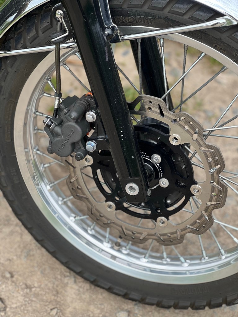 Dieses Fahrerlebnis galt es allerdings zuerst einmal bei unseren beiden W’s ein wenig anzupassen. Breitere Lenker und angepasste Sitzbänke machten die Maschinen ein weiteres Stück handlicher und bequemer. Progressive Gabelfedern, dickeres Gabelöl und bessere Federbeine verbesserten die Fahreigenschaften insgesamt noch einmal erheblich gegenüber dem Originalfahrwerk. Zu guter Letzt sorgten modifizierte Bremsen (bei Carmen eine Beringer Bremsanlage, bei mir eine Wavescheibe mit Sinterbelägen) ausgestattet mit Stahlflexleitungen für eine feinere Dosierung und eine bessere Standhaftigkeit. Die Trommelbremse als Verzögerungshilfe am Hinterrad sei hier nur kurz erwähnt. Schön, dass sie da ist.