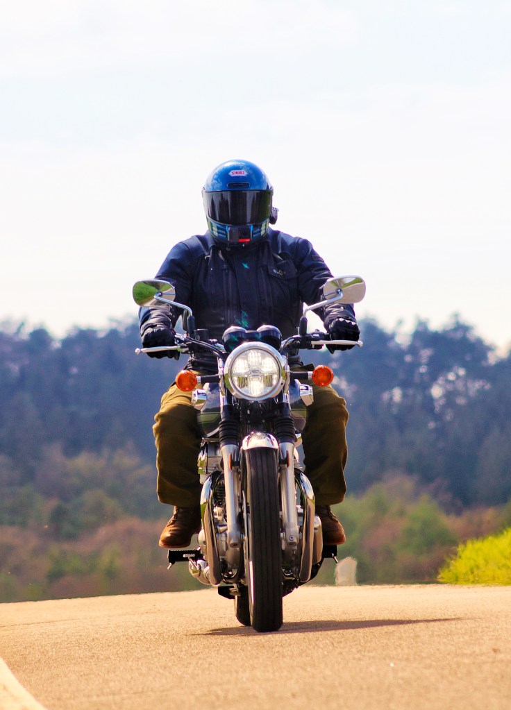 Unterwegs im Odenwald macht die W jedenfalls sensationell viel Spaß, denn der flache, etwas nach vorne orientierte Lenker und die schlanken Reifen machen die Maschine insgesamt handlich. Und auch wenn sie ab Werk höher steht als die alten Modelle, hat man schnell wieder das kratzige Gefühl der Sicherheit in den Kurven unter sich, wenn die Funken der Fußrastennippel fliegen. Gut dabei ist, dass der Auspuff und der Hauptständer nimmer so schnell mitspielen wie bei meiner W650 vor der Fahrwerkskur. Doch mal langsam, denn insgesamt gesehen bietet sie einen tollen Sitz- und Fahrkomfort und wenn man der Motorradklasse angemessen fährt, stellt sich schnell dieses freche Grinsen unterm Helm ein, das mich an meiner schon immer begleitet hat.