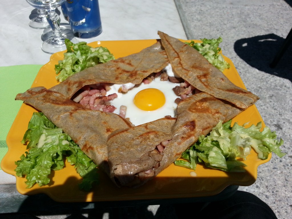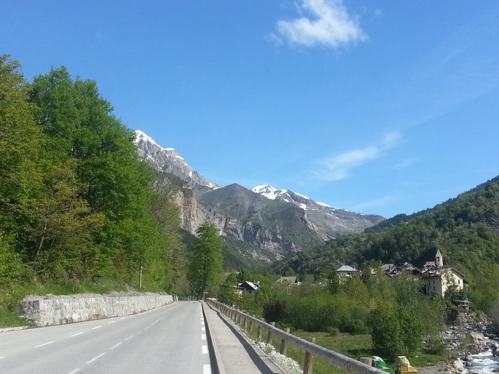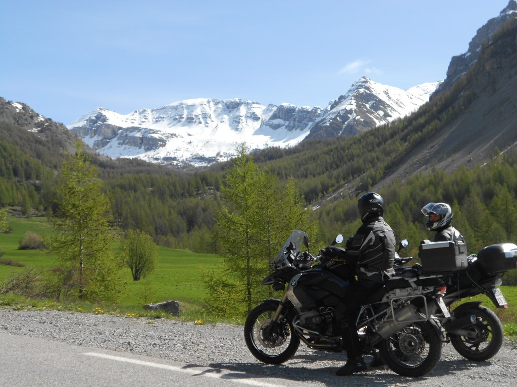 Während viele Motorradfahrer ihre Aufmerksamkeit den berühmten Pässen der Seealpen schenken, haben wir nach einer ruhigen Nacht im Hotel Renaissance und einem typisch französischen Frühstück flink die Motorräder beladen und sind auf dem Weg zum Col d‘Izoard. Auf eine bestimmte Art und Weise mangels seiner Bekanntheit ein Underdog im Vergleich zu den berühmten Pässen wie Cayolle (den wir zuvor überquert haben), Galibier, Col de l’Iseran oder auch Tourmalet. Die Verkehrsdichte ist daher auch eher gering, denn wer schnell von Briacon nach Queyras oder Guillestre kommen möchte, fährt nicht über die Passstraße, sondern nimmt den direkten und zugleich sehr gut ausgebauten Weg durch das Tal der Durance. Dieser verkehrsfreie Zustand macht den Izoard fahrtechnisch natürlich zu einem besonderen Leckerbissen, der uns am Anfang des Anstiegs südlich über Château-Queyras kommend, mit saftig grünen Wiesen und dem Restaurant Chez Marius empfängt. Nach Cayolle und Vars und dem Frühstück war eine Stärkung dringend nötig, und die leckeren Galettes des Restaurants haben sich wirklich gelohnt.