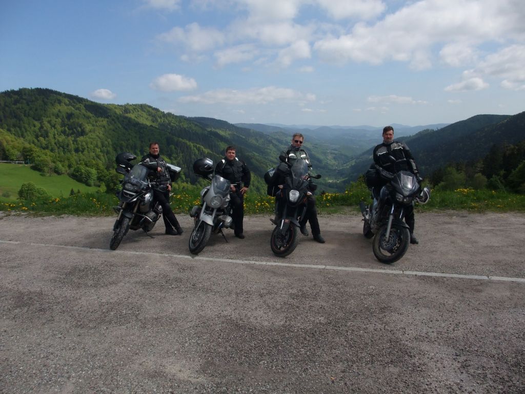 Nach der Pause beginnen die ersten Kurven und die Landschaft ändert stetig ihr Gesicht. Eben noch die stark duftenden Nadelwäldern, die die Straße einrahmten, nun teils kahle Gerölllandschaft wie im Hochgebirge eben üblich. Die ersten Serpentinen beginnen und da wir früh im Jahr sind sehen wir neben niedrig wachsenden Latschen und Felsgestein jede Menge Schnee. Hier erwacht das neue Leben gerade aus dem Winterschlaf und mit ihm auch die Murmeltiere. Teilweise flitzen sie über die Schneefelder, rennen vor und neben unseren Maschinen her, oder wärmen sich ihr Fell auf bereits Schneebefreiten Flecken in der Sonne. Man spürt, förmlich die Explosion des Frühlings die hier oben auf 2360 Metern gerade bevorsteht, denn die Fesseln des Winters sind bereits abgestreift. In Sachen Höhe ist der Col D’Izorad übrigens überhaupt kein Underdog, sondern der dritthöchste Alpenpass, den man mit Kraftfahrzeugen überqueren kann. Und liebe Freunde das sollte man sich keinesfalls entgehen lassen.