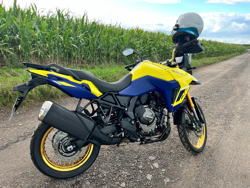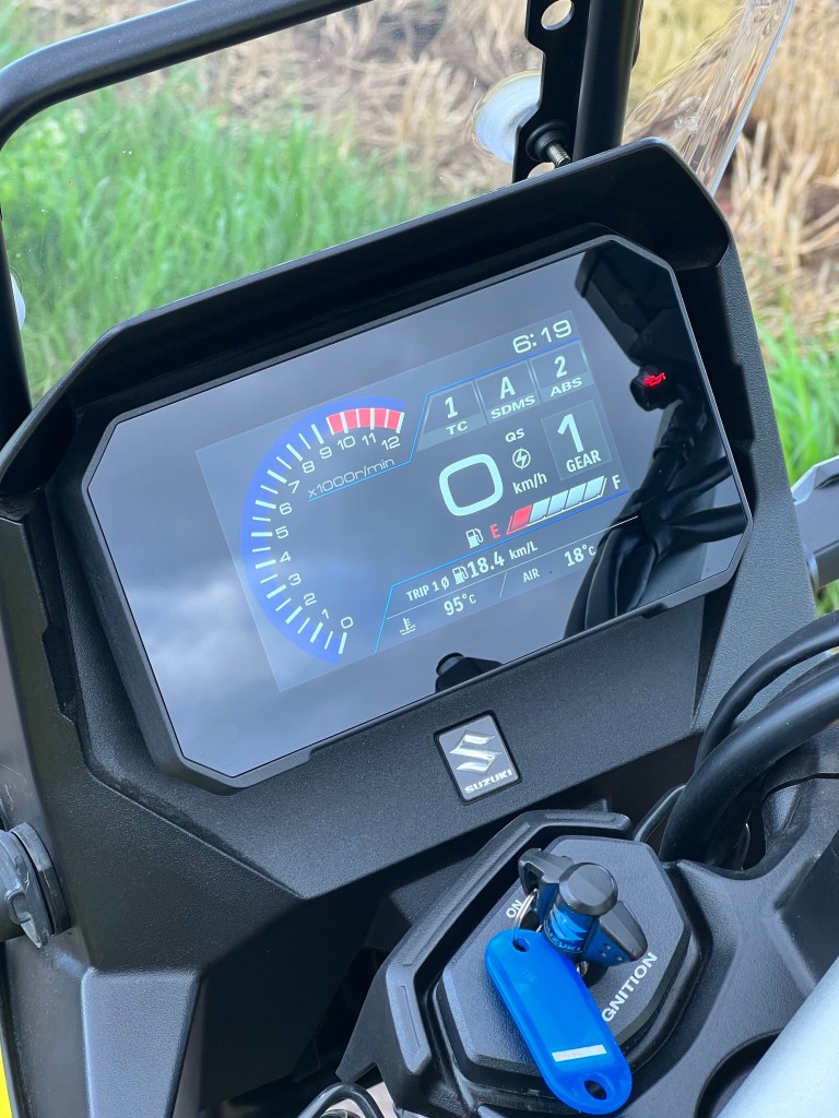 Neben den bereits genannten Details verfügt die neue V-Strom ebenfalls wie die meisten neuen Suzukis über das Easy Start System, die bereits bekannte Drehzahlanhebung für das Anfahren und über drei gut abgestufte Fahrmodi, mit der Möglichkeit im Gelände (G)-Mode das ABS am Hinterrad zu deaktivieren. Die dreistufige Traktionskontrolle rundet die fahrtechnische Ausstattung zu guter Letzt ab. Zieht man den nicht einstellbaren Kupplungshebel und die noch fehlende Tourenausstattung ab, bekommt die Konkurrenz jedoch leider an diesem Punkt schon den ersten leichten Aufwind, ohne jetzt tiefer auf eine CF-Moto 800 MT eingehen zu wollen. Um also wirklich reisetauglich werden zu können, muss der geneigte Käufer noch einmal kräftig in Ausstattung investieren. Suzuki bietet dazu unter anderem einen Hauptständer, Sitzbänke in unterschiedlichen Höhen, eine Griffheizung, Sturzbügel, Motorschutz, Koffersysteme sowohl aus Aluminium wie auch aus Kunststoff, ein Topcase, LED-Zusatzscheinwerfer, Navigationshalter und eine hohe Tourenscheibe an. Weitere Alternativen hierzu kommen wie üblich von den diversen Zulieferern wie SW-Motech und Touratech oder auch Hepko Becker.