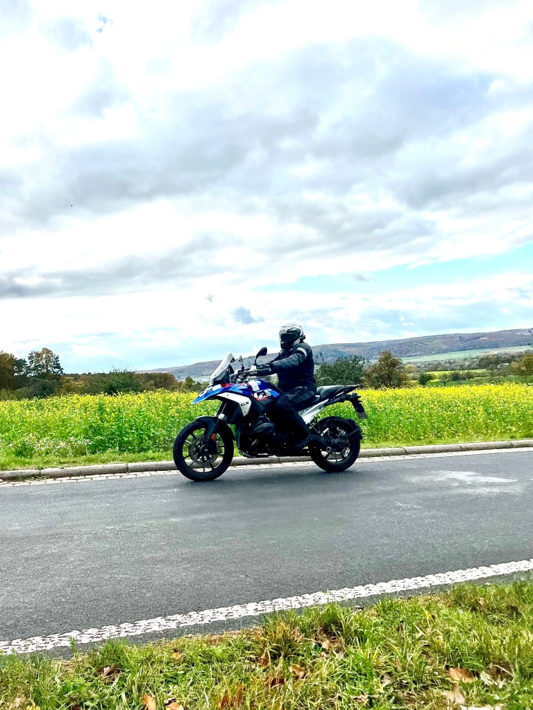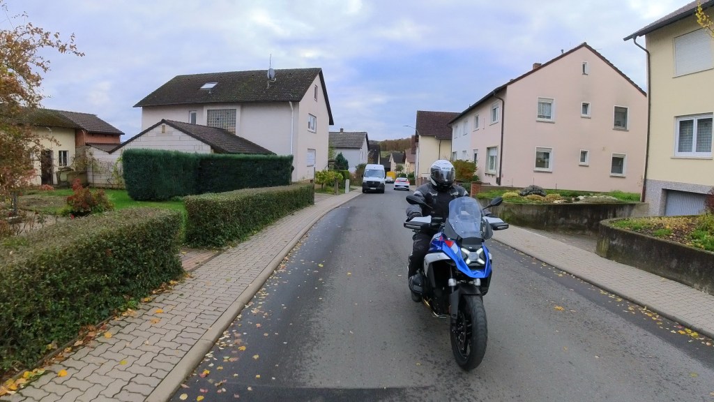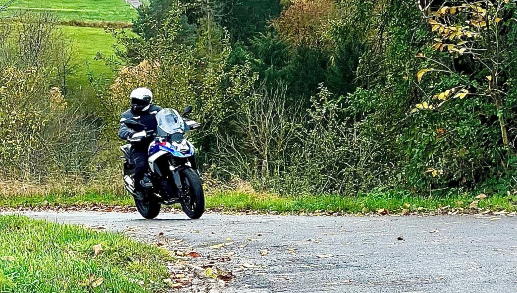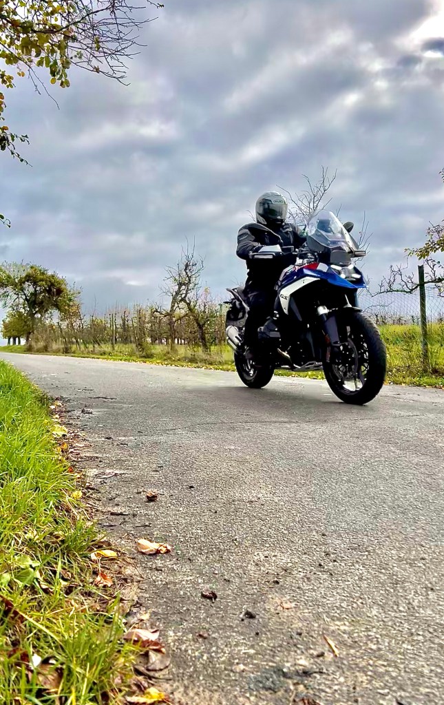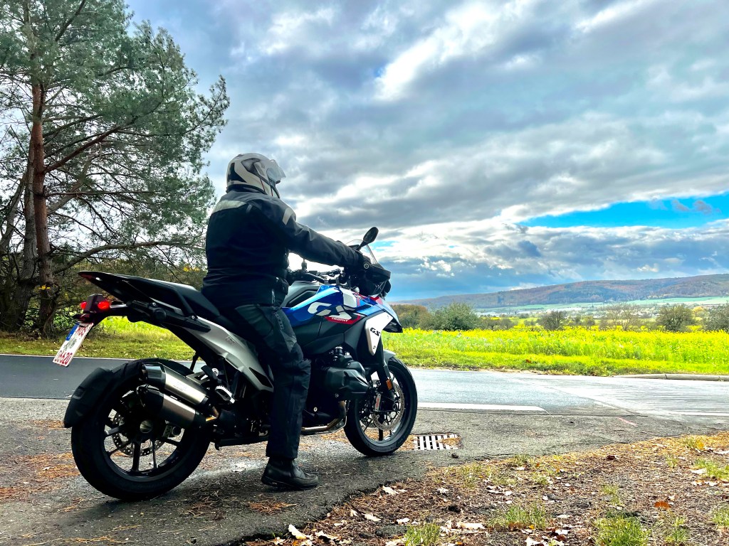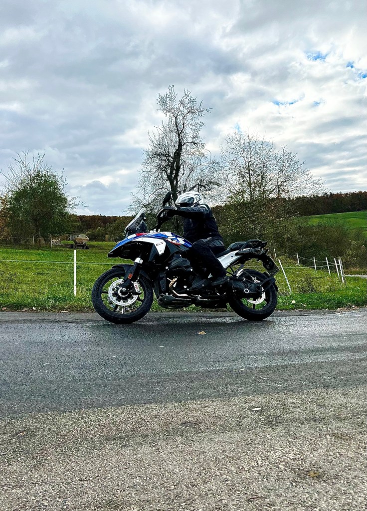 Und leichter ist bekanntlich besser! Gerade auf engen und zugleich kurvigen Strecken mit teils unsauberem Asphalt spielt die neue GS ihre Stärken aus. Während man den breiten Lenker entspannt bewegt, rollt die Maschine unbeeindruckt über den schlechten Belag und gleichzeitig präzise dorthin, wo man sie haben will. Dabei macht das Wedeln durch die engen Kurven im Odenwald dank ihrer Handlichkeit unsagbar viel Spaß. Und natürlich hat hier auch das Drehmoment des Motors ein Wörtchen mitzureden. Seine kräftige Mitte hat mir auf der Testrunde einfach richtig gut gefallen und am Ende das gewisses „MEHR MEHR“ im Kopf erzeugt.