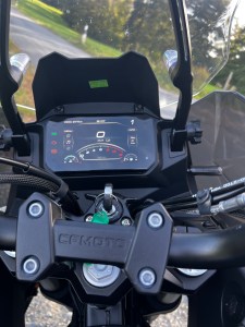 In Sachen weitere Fahrassistenz und elektronische Helferlein sieht es neben einem ABS-System eher mager aus. Es gibt keinerlei Fahrmodi, keine Traktionskontrolle, und leider sucht man auch einen Tempomat vergeblich. Das hätte die Ausstattung wirklich abgerundet, aber natürlich muss man hier auch den Preis im Auge behalten. Die CFMoto 700MT eignet sich zudem eher, um alleine zu verreisen, denn erstens sind 155kg Zuladung nicht die Welt und zweitens wird es auf dem hinteren Sitzplatz aufgrund der kompakten Bauweise sehr schnell mal eng. Und doch gerade auch wegen ihrer Ausstattung mit dem einstellbaren Windschild, den Handschützer und der Möglichkeit, die hauseignen robusten Hartschalen-Koffer zu montieren ist sie für die Reise durchaus gut geeignet.