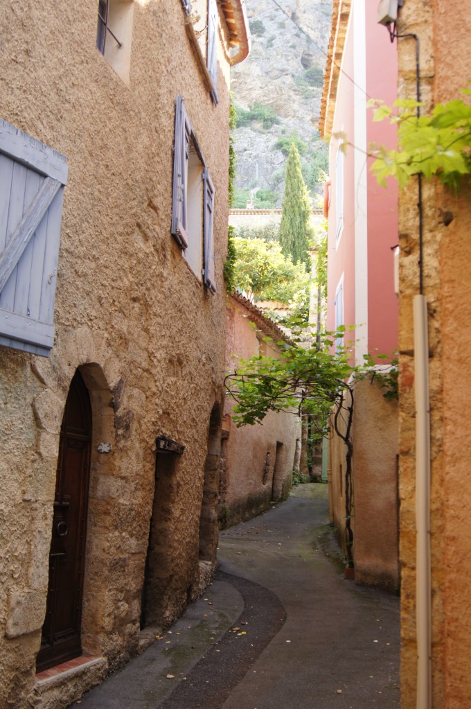 Der Morgen ist noch jung, als wir uns erneut auf unsere Motorräder schwingen und von MOUSTIERS-SAINTE-MARIE aufbrechen. Der Ort hat einen ganz besonderen Charme und Carmen und mich in seinen Bann gezogen. Nicht nur wegen seiner Geschichte rund um die Templer und des silbern glitzernden Sterns zwischen den Bergspitzen hoch über dem Ort, sondern auch wegen seines gesamten historischen Ortskern. Die Gassen sind eng und verwinkelt und die Gebäude aus grauen Steinen gebaut. Alles in allem könnte man meinen man steht in einer Kulisse vom Herr der Ringe und jeden Moment kommt Gandalf um die Ecke geritten.