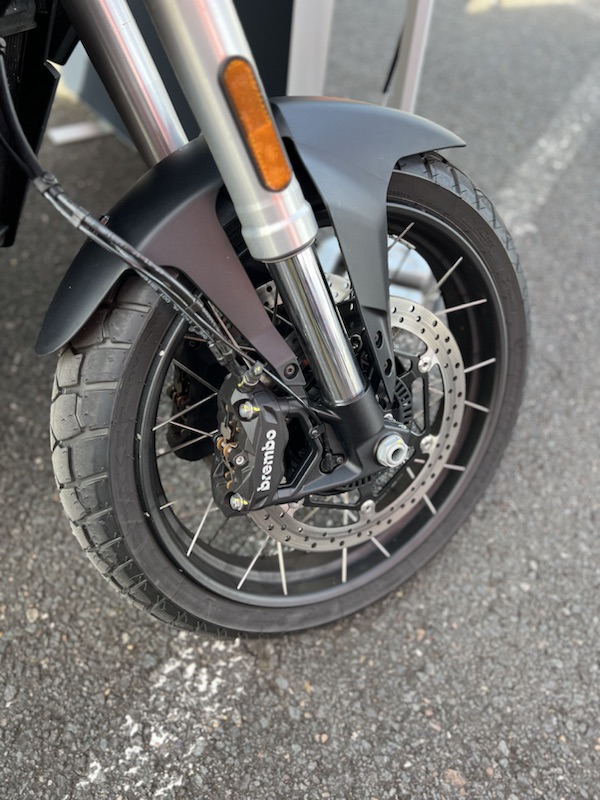 Das Fahrwerk der Stelvio verzichtet auf die semiaktive Variante der V100 Mandello. Kann man natürlich machen ist aber in diesem Segment unter Umständen nicht ganz der beste Weg, da die Mitbewerber hier ordentlich vorgelegt haben. Ein guter Kompromiss in der Abstimmung ist es trotzdem, denn sowohl die 46er Sachs-Gabel wie auch das KBY-Federbein haben die fahrfertig 246 kg schwere Maschine gut im Griff und können beide in der Vorspannung und der Zugstufendämpfung stufenlos angepasst werden. So gibt es auch mit 463 Kilogramm Gesamtgewicht kaum Probleme, wenn es auf die große Tour geht. Ebenso wenig übrigens wie beim Bremsen, denn die Brembozangen beißen sehr gut in die 320er Scheiben an der Front und bieten in Verbindung mit dem Kurven-ABS ein hohes Maß an Sicherheit.