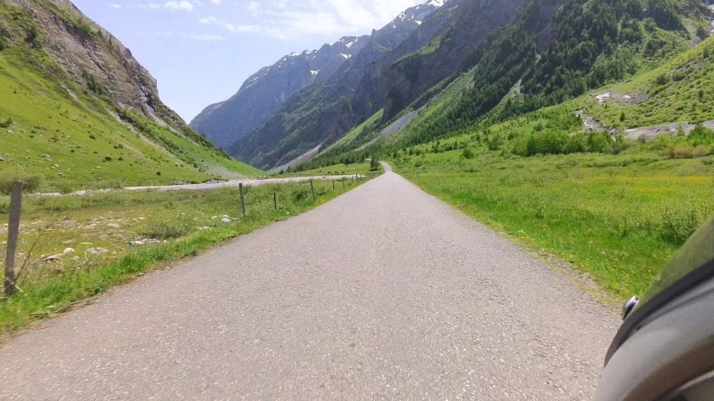 Von Osten kommend fahren wir über Seez nach Bourg-Saint-Maurice und damit zum östlichen Ausgangspunkt der Route de Beaufort, wie sie hier noch heißt. Beginnt diese zunächst noch etwas gemächlich, so ändert sich das Streckenprofil kurze Zeit später recht schnell und plötzlich sind es 8 % Steigung und 10 Kehren, die uns auf der eineinhalbspurigen Strecke bis nach Cret Bettex bringen. Von hier aus folgen wir den Kurven der von nun an sanfter verlaufenden Straße weiter in das sich vor uns weit öffnende Tal hinein. Die Vegetation verändert sich zusehends und die rundum bewaldete Natur rechts und links der Straße geht über in hochalpine Vegetation in Verbindung mit nacktem Fels.
