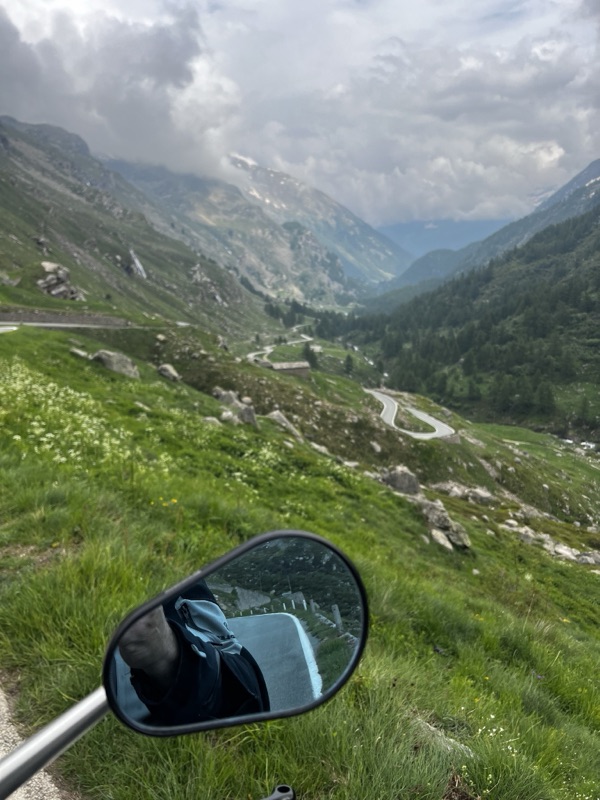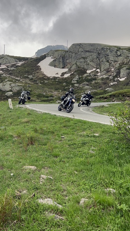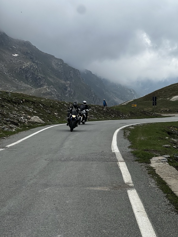 After the Cascata de Noasca, a truly romantic waterfall, the first narrow hairpin bends begin up the mountain. Further up, the road becomes narrower and is accompanied by forest, rocks and the Orco river. Several small villages or even just individual houses lie to the right and left of the road before the actual ascent to the pass begins after Villa and Lake Orco. 28 hairpin bends accompany us from here up to an altitude of 2,612 metres, if the unfinished road is anything to go by. What we don’t know at this point is that he doesn’t want it today, so we continue up the mountain without any preconceptions and enjoy the view and the sensational nature around us.