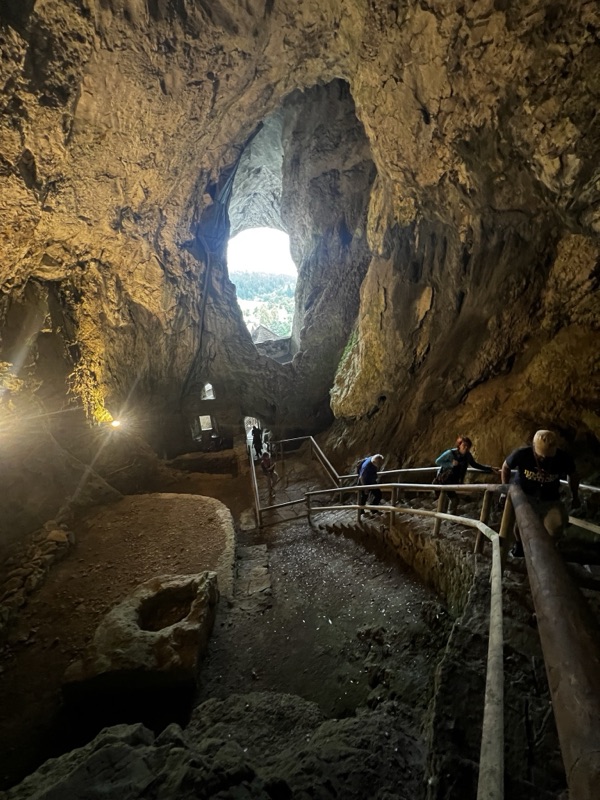 A sensational breakfast later, we are already in Slovenia and have already learnt via the smallest roads that it’s not just the French who can build 3D roads. We deliberately skip Ljubljana, but stop off in Stanjel and visit the old town centre and the bee colonies there (yes, the beekeeper is everywhere). Afterwards, we continue our winding journey through the countryside and reach the fantastic castle complex in Predjama relatively quickly. The fortress really has it all, even if the lord of the manor was unfortunately betrayed by his own people and killed by an enemy cannonball while going to the toilet. The fortress built into the mountain and the adjoining cave with a secret supply passage leave nothing to be desired in terms of spectacular views and are one of the highlights of the day. But further east, in Skocjan on the Reka, this highlight is almost surpassed.