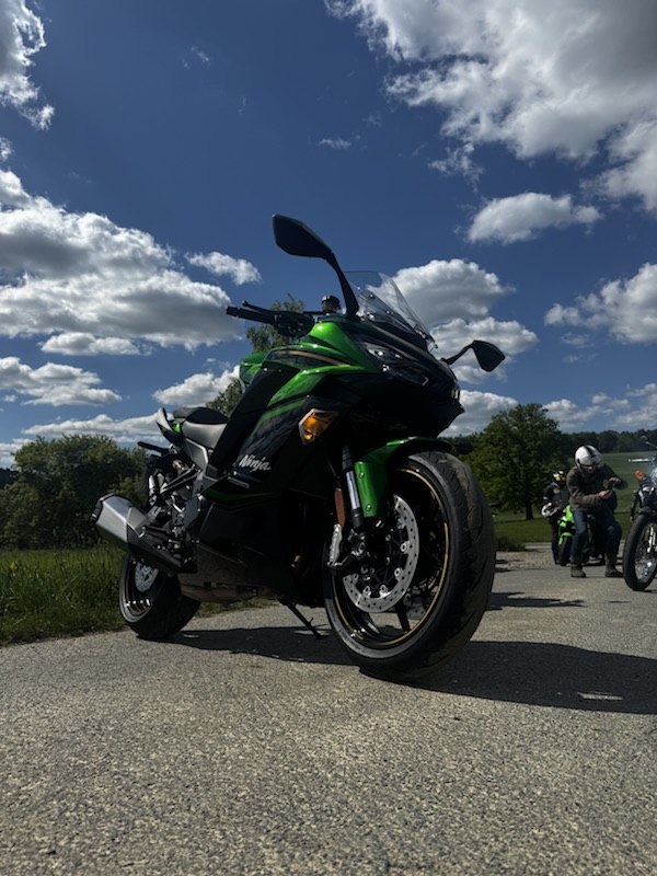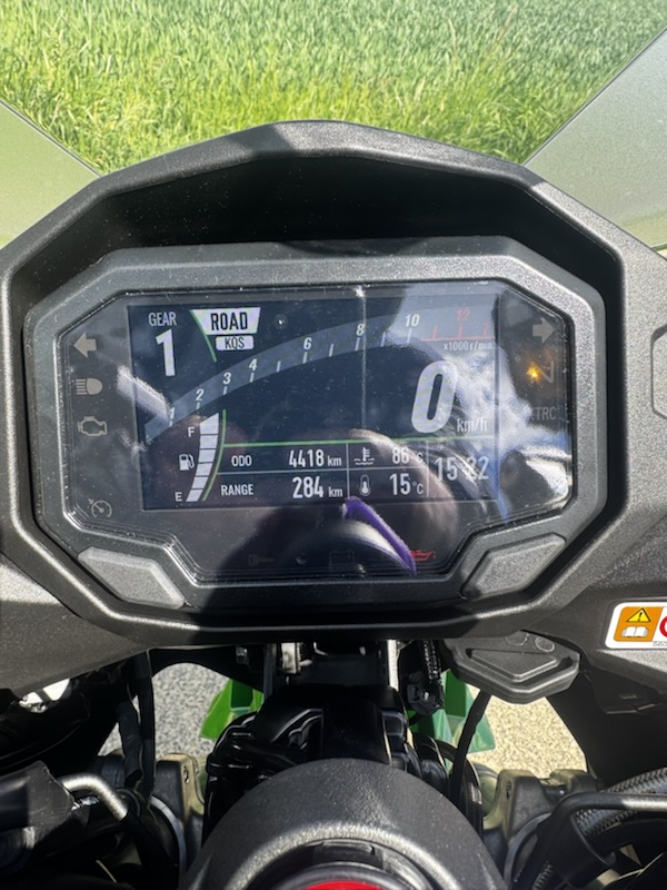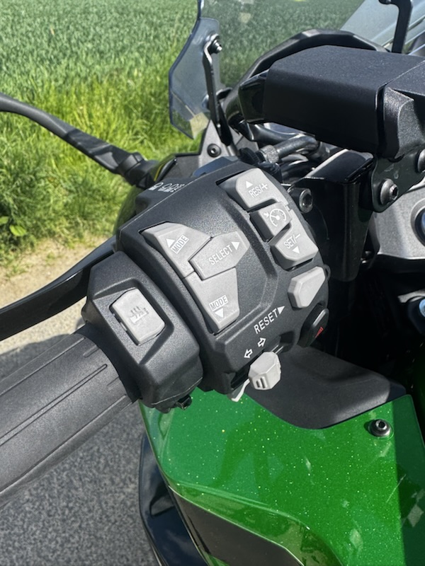 Dabei ist die neue Ninja nicht nur stark, sondern auch schlau. Das zentrale TFT-Farbdisplay mit Konnektivität zeigt die Einstellungen der Fahrmodi (Sport, Road, Rain, Rider Custom) und vieles mehr. Dank Kurven-ABS, Traktionskontrolle (KTRC), Wheelie Control, Sliding Control und einem Tempomaten lässt sich die Maschine fast schon telepathisch steuern. Aber eben nur fast, denn die altbekannten Bedienungsbugs des Vorgängermodelles sind leider immer noch nicht angepasst worden. Der Druck auf den Taster für die Änderung der Fahrmodi z.B. erscheint immer noch ewig und dabei muss das Gas mehr oder weniger zu sein. Auch werden die Stufen der serienmäßigen Griffheizung immer noch nicht im Cockpit angezeigt. Aber im normalen und täglichen Gebrauch wird auch das ins Fahrerblut übergehen und man merkt ja recht schnell, wie warm die Finger an den Griffen werden. Lustiges aber zugleich nützliches Gadget ist die USB-Großladebuchse am Lenker, die wenn man auf ihr ein PV-Feld installieren würde keinen Batteriestrom zum Laden benötigen würde.