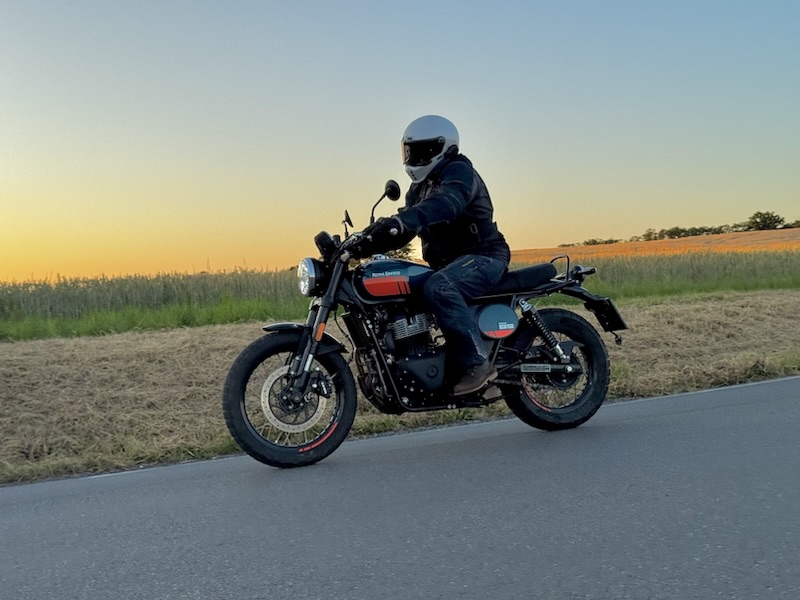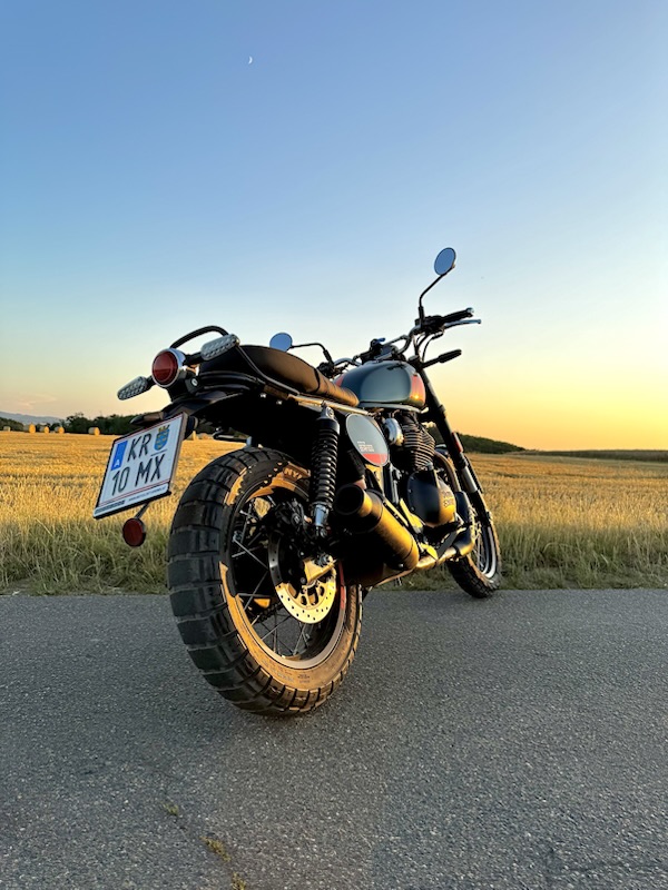 Im leichten Gelände: Ja, Scrambler-typisch keine Enduro, aber mit Stollenreifen wird aus dem Feldweg ein Spielplatz. Auf Schotter geht die Bear sauber voran, lässt sich dank abschaltbaren ABS am Heck gut dirigieren und bleibt dabei so charmant, dass es die wahre Freude ist.