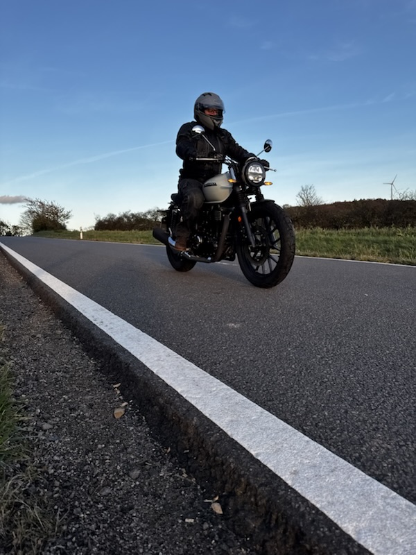 The suspension is simple but good. A 41 mm telescopic fork up front, two shock absorbers at the rear. No high-tech, but reliable and comfortable. The rear preload can be adjusted, everything else is fixed – and that’s absolutely fine. The damping is firm enough for cornering fun without sacrificing everyday comfort. The brakes perform cleanly, and ABS, traction control and the slipper clutch operate unobtrusively in the background. Especially in autumn – damp roads, leaves everywhere – these subtle helpers are a real safety bonus.